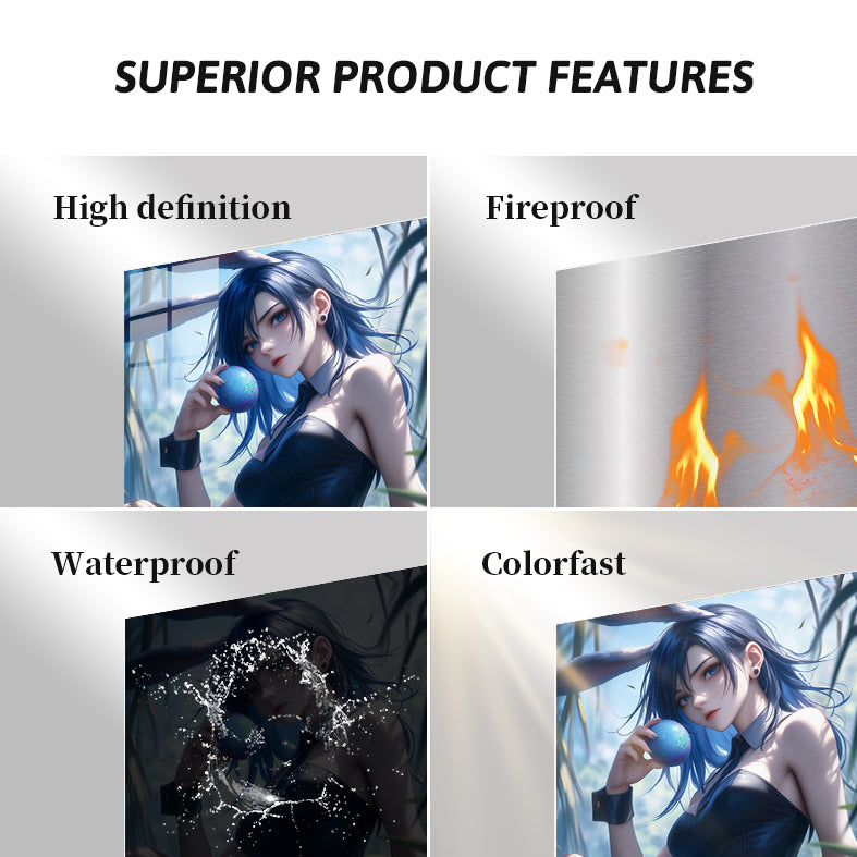 Metal printing is a unique technique that transfers images directly onto aluminum sheets, creating a distinctive gloss and depth. With Metaleks-S.HD image processing technology, metal posters feature more vibrant colors, enhanced three-dimensionality, and greater vividness. They are extremely durable, waterproof, scratch-resistant, and fade-proof, making them suitable for both indoor and outdoor environments. Metal posters are perfect for collection, display, or as gifts, capturing attention while elevating artistic value and showcasing a one-of-a-kind personality and taste.