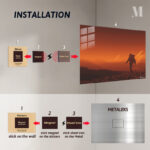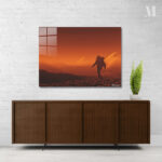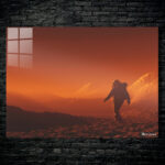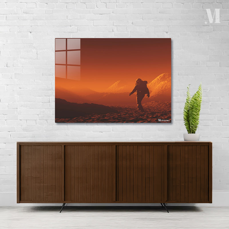 An astronaut is walking on a rocky, reddish-brown terrain. Metaleks Ultra HD Metal Poster – Create Your Passionate Space.