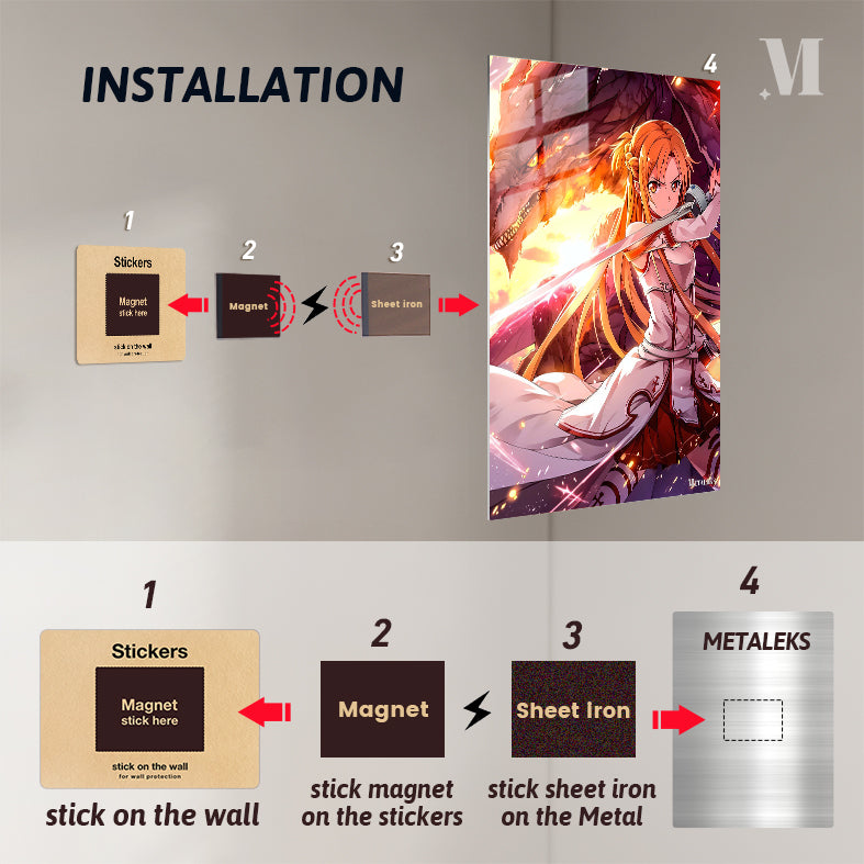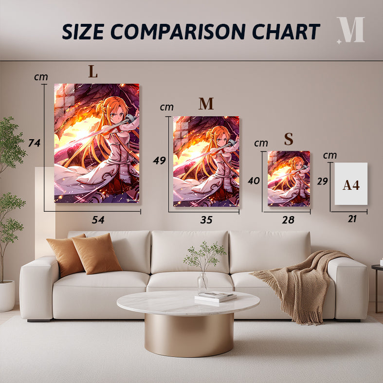 Asuna from Sword Art Online is holding a sword, ready to fight a dragon. Metaleks Ultra HD Metal Poster – Create Your Passionate Space.