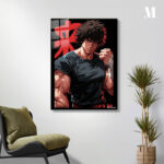 A muscular individual with dark, curly hair, wearing a black t-shirt and wrist wraps, is depicted in a dynamic pose. Metaleks Ultra HD Metal Poster – Create Your Passionate Space.