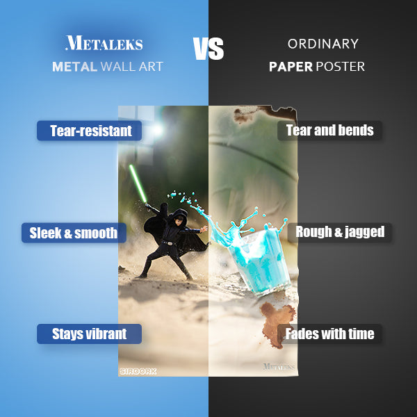Metal printing is a unique technique that transfers images directly onto aluminum sheets, creating a distinctive gloss and depth. With Metaleks-S.HD image processing technology, metal posters feature more vibrant colors, enhanced three-dimensionality, and greater vividness. They are extremely durable, waterproof, scratch-resistant, and fade-proof, making them suitable for both indoor and outdoor environments. Metal posters are perfect for collection, display, or as gifts, capturing attention while elevating artistic value and showcasing a one-of-a-kind personality and taste.