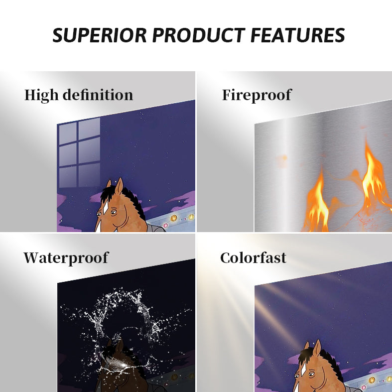 Metal printing is a unique technique that transfers images directly onto aluminum sheets, creating a distinctive gloss and depth. With Metaleks-S.HD image processing technology, metal posters feature more vibrant colors, enhanced three-dimensionality, and greater vividness. They are extremely durable, waterproof, scratch-resistant, and fade-proof, making them suitable for both indoor and outdoor environments. Metal posters are perfect for collection, display, or as gifts, capturing attention while elevating artistic value and showcasing a one-of-a-kind personality and taste.