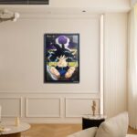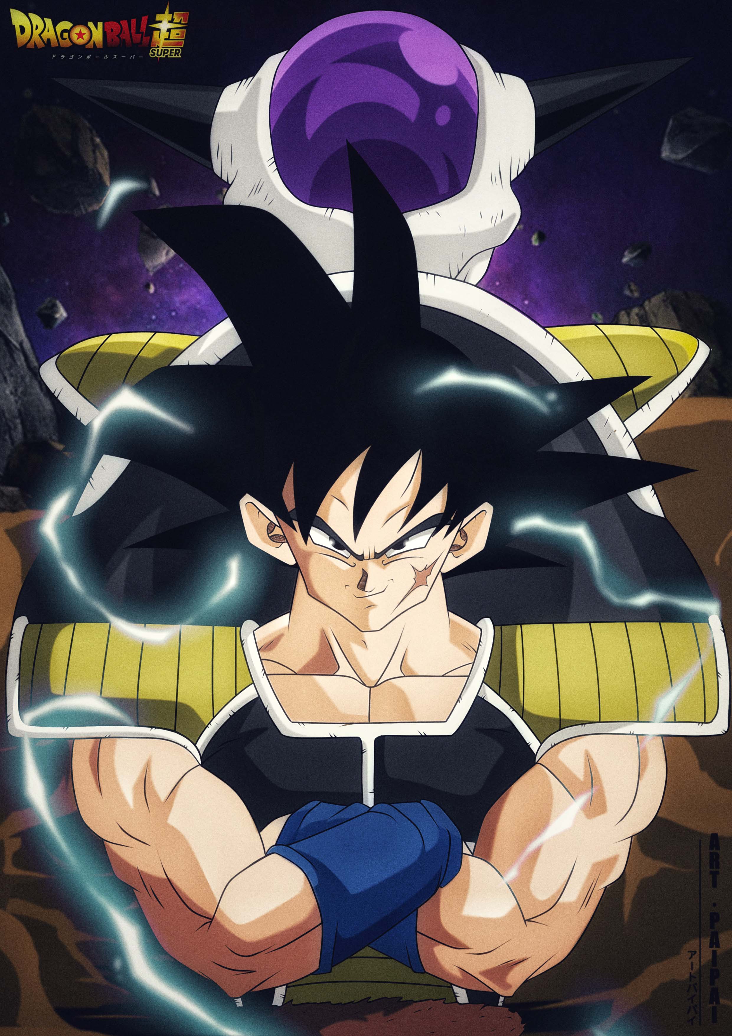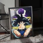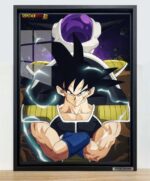 This painting features two significant characters from “Dragon Ball Super”: Bardock and Frieza. Bardock stands in the foreground, clad in his Saiyan battle armor, arms crossed with a determined and confident expression. In the background, Frieza appears in his classic form, hinting at their fateful confrontation. The entire scene is filled with a sense of power and tension, with the cosmic backdrop adding an epic dimension to the showdown.