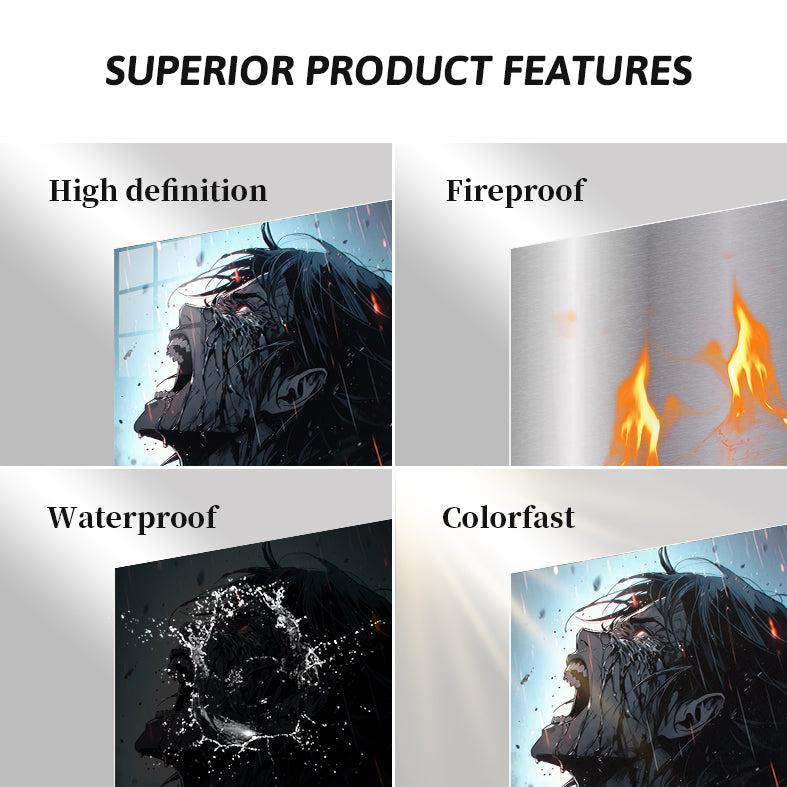 Metal printing is a unique technique that transfers images directly onto aluminum sheets, creating a distinctive gloss and depth. With Metaleks-S.HD image processing technology, metal posters feature more vibrant colors, enhanced three-dimensionality, and greater vividness. They are extremely durable, waterproof, scratch-resistant, and fade-proof, making them suitable for both indoor and outdoor environments. Metal posters are perfect for collection, display, or as gifts, capturing attention while elevating artistic value and showcasing a one-of-a-kind personality and taste.