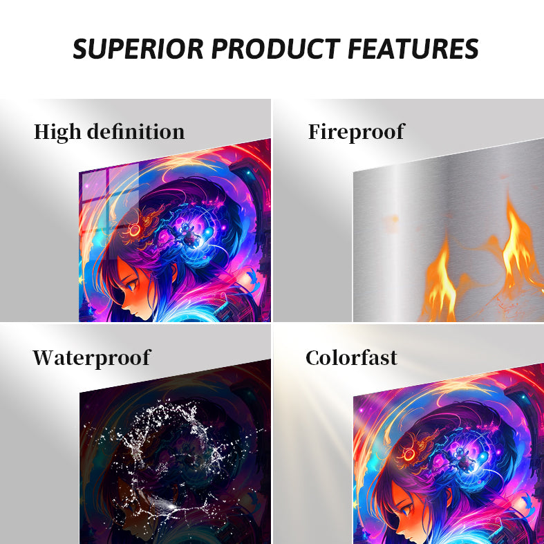 Metal printing is a unique technique that transfers images directly onto aluminum sheets, creating a distinctive gloss and depth. With Metaleks-S.HD image processing technology, metal posters feature more vibrant colors, enhanced three-dimensionality, and greater vividness. They are extremely durable, waterproof, scratch-resistant, and fade-proof, making them suitable for both indoor and outdoor environments. Metal posters are perfect for collection, display, or as gifts, capturing attention while elevating artistic value and showcasing a one-of-a-kind personality and taste.