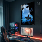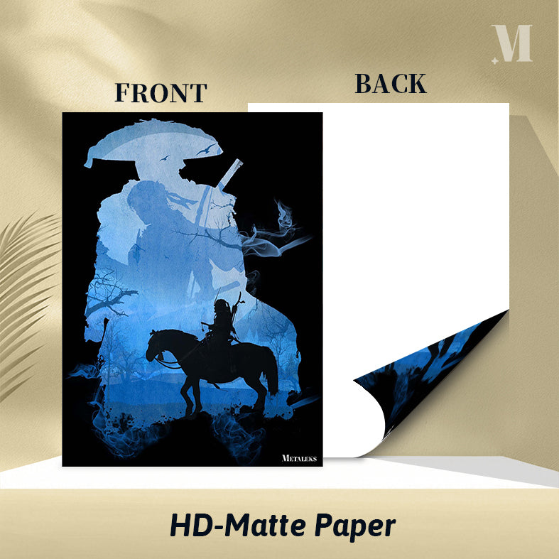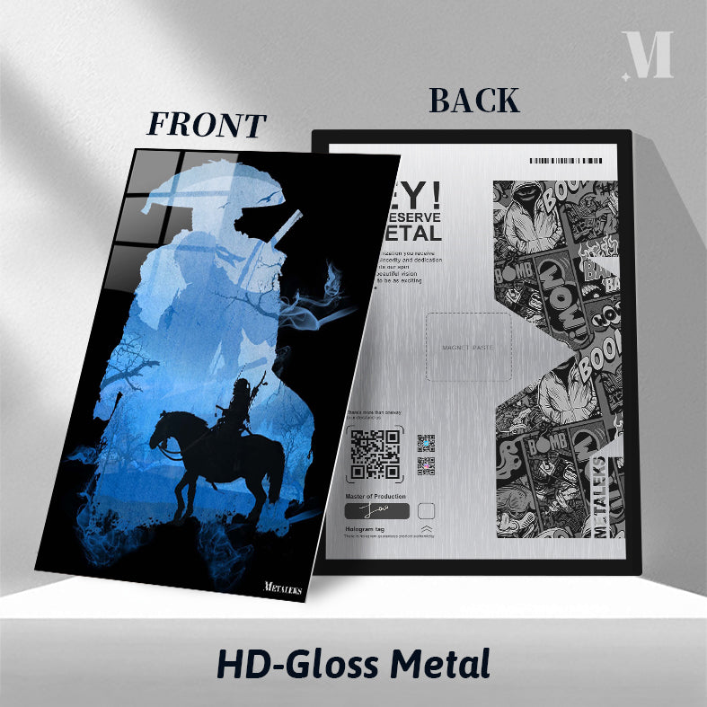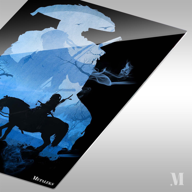 A samurai riding a horse. Metaleks Ultra HD Metal Poster – Create Your Passionate Space.
