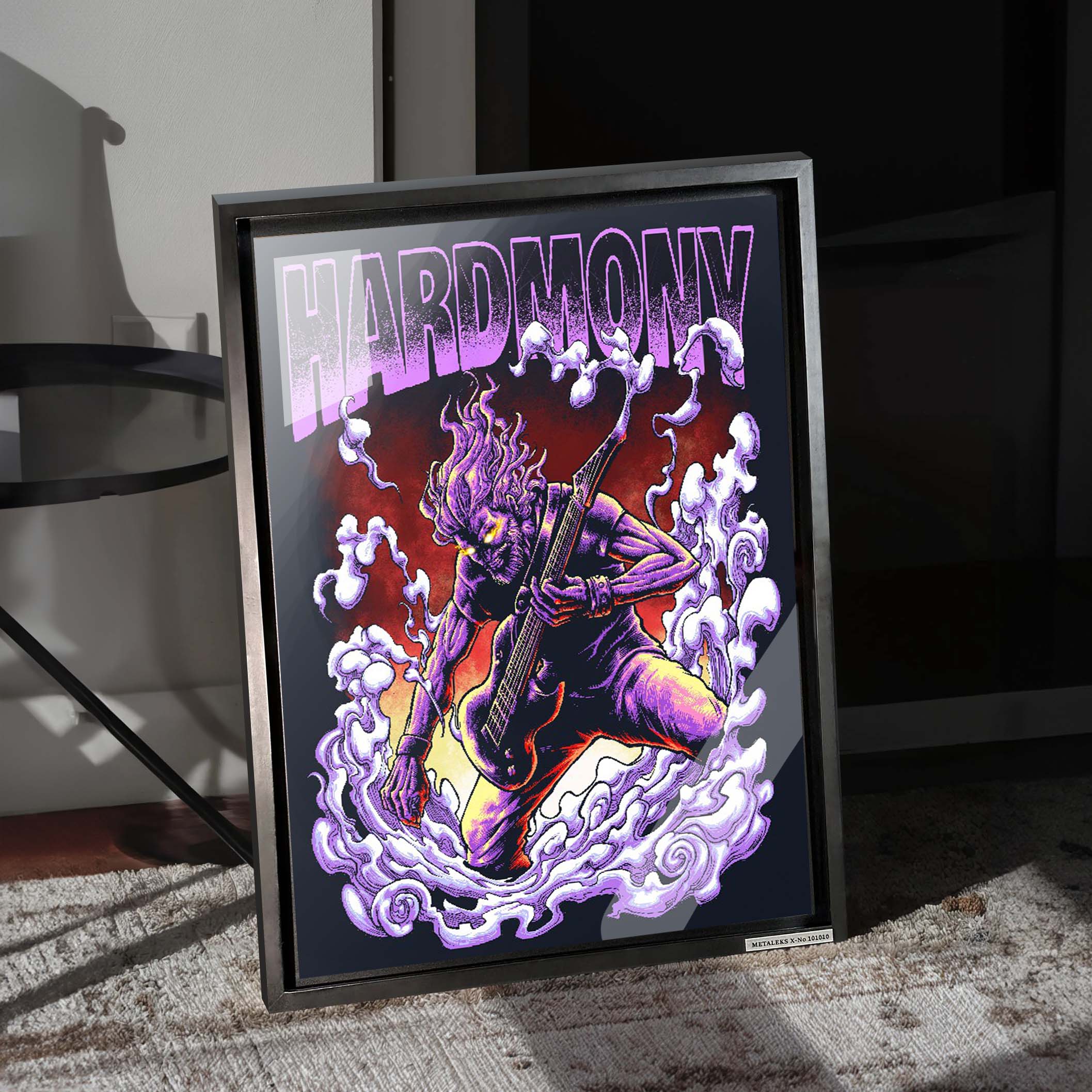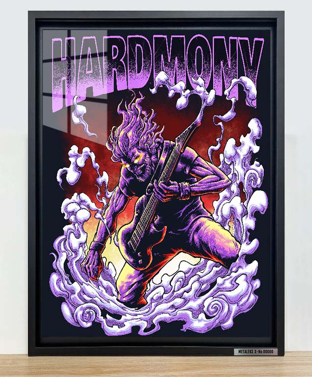 The title “Hardmony” at the top not only represents the fusion of musical harmony and hardcore strength but also celebrates the power of music. Through this artwork, I hope to convey the passion and strength of rock music, while also allowing viewers to appreciate the unique creativity in artistic expression.