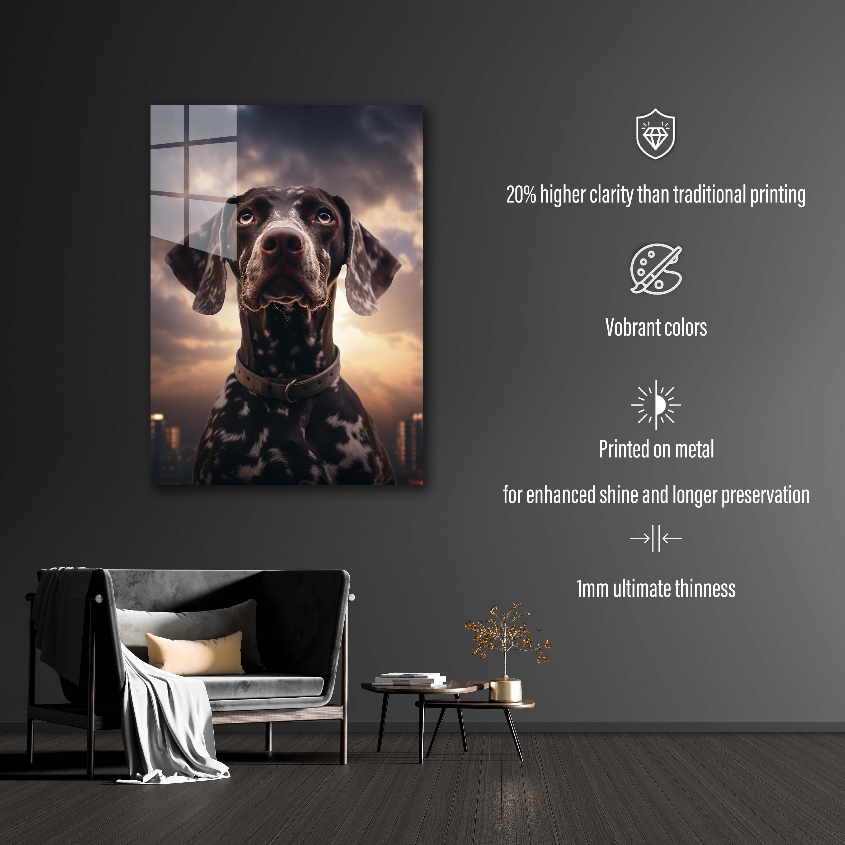 Metal printing is a unique technique that transfers images directly onto aluminum sheets, creating a distinctive gloss and depth. With Metaleks-S.HD image processing technology, metal posters feature more vibrant colors, enhanced three-dimensionality, and greater vividness. They are extremely durable, waterproof, scratch-resistant, and fade-proof, making them suitable for both indoor and outdoor environments. Metal posters are perfect for collection, display, or as gifts, capturing attention while elevating artistic value and showcasing a one-of-a-kind personality and taste.
