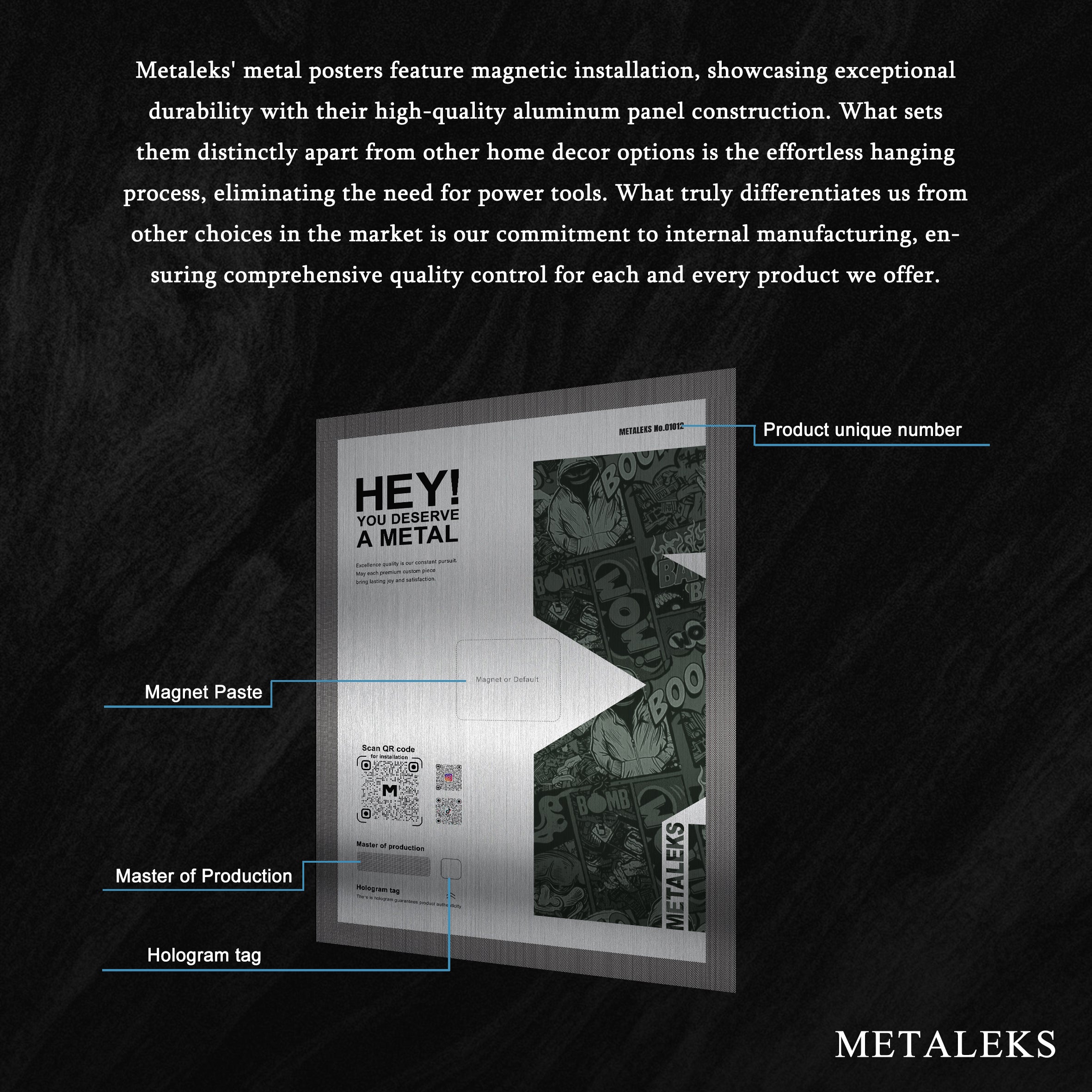 Unmatched Individuality:?Metaleks brings together exceptional creators from all around the world. They craft with heart and inspiration, delivering a unique visual experience for you.