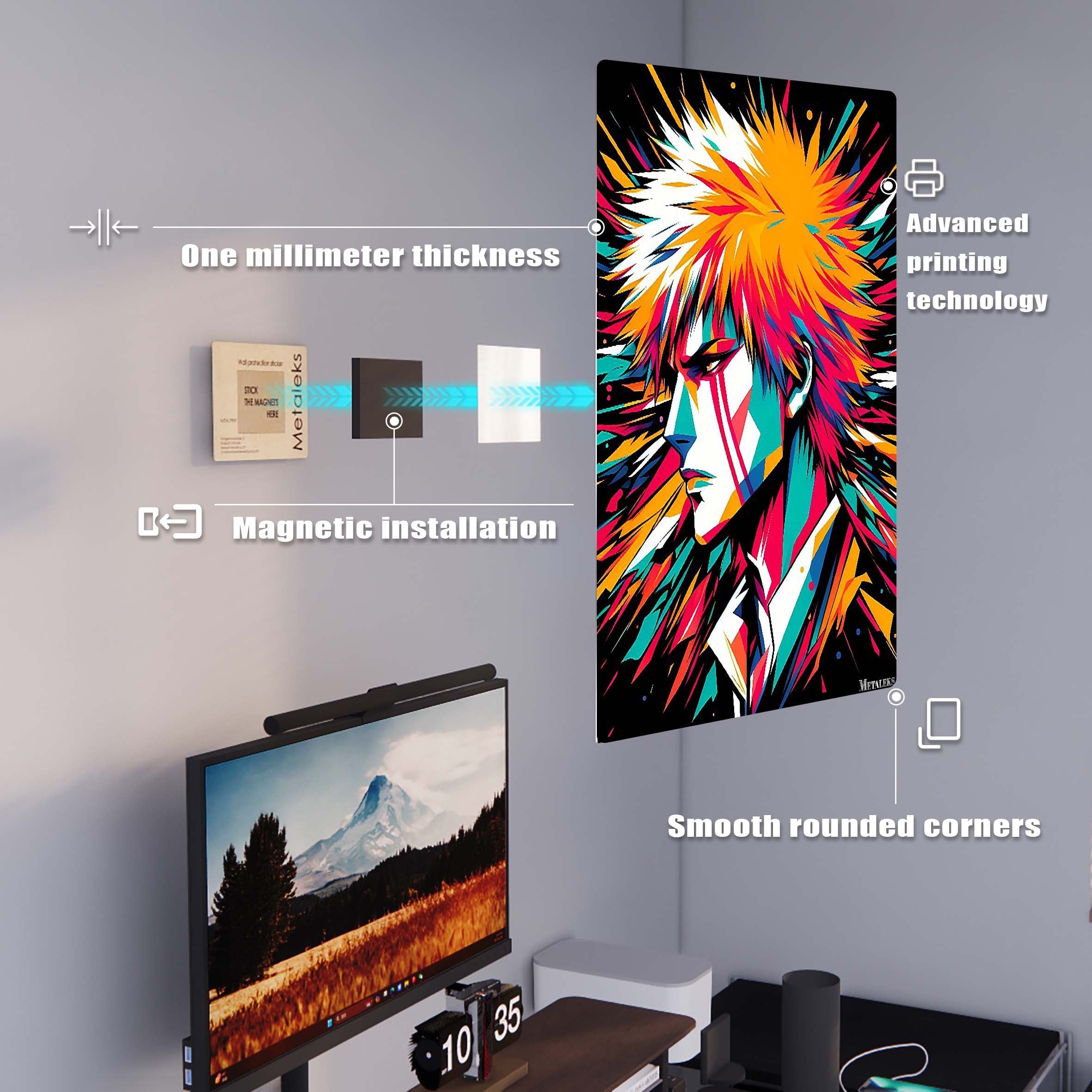 Metal printing is a unique technique that transfers images directly onto aluminum sheets, creating a distinctive gloss and depth. With Metaleks-S.HD image processing technology, metal posters feature more vibrant colors, enhanced three-dimensionality, and greater vividness. They are extremely durable, waterproof, scratch-resistant, and fade-proof, making them suitable for both indoor and outdoor environments. Metal posters are perfect for collection, display, or as gifts, capturing attention while elevating artistic value and showcasing a one-of-a-kind personality and taste.