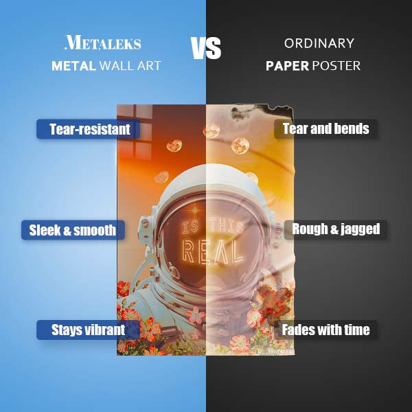 Metal printing is a unique technique that transfers images directly onto aluminum sheets, creating a distinctive gloss and depth. With Metaleks-S.HD image processing technology, metal posters feature more vibrant colors, enhanced three-dimensionality, and greater vividness. They are extremely durable, waterproof, scratch-resistant, and fade-proof, making them suitable for both indoor and outdoor environments. Metal posters are perfect for collection, display, or as gifts, capturing attention while elevating artistic value and showcasing a one-of-a-kind personality and taste.