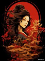 A woman with long, flowing hair styled in an intricate updo, wearing a traditional garment. Metaleks Ultra HD Metal Poster – Create Your Passionate Space.