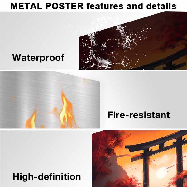 Metal printing is a unique technique that transfers images directly onto aluminum sheets, creating a distinctive gloss and depth. With Metaleks-S.HD image processing technology, metal posters feature more vibrant colors, enhanced three-dimensionality, and greater vividness. They are extremely durable, waterproof, scratch-resistant, and fade-proof, making them suitable for both indoor and outdoor environments. Metal posters are perfect for collection, display, or as gifts, capturing attention while elevating artistic value and showcasing a one-of-a-kind personality and taste.