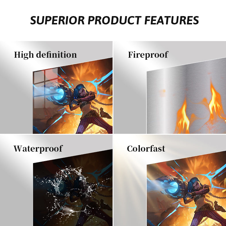 Metal printing is a unique technique that transfers images directly onto aluminum sheets, creating a distinctive gloss and depth. With Metaleks-S.HD image processing technology, metal posters feature more vibrant colors, enhanced three-dimensionality, and greater vividness. They are extremely durable, waterproof, scratch-resistant, and fade-proof, making them suitable for both indoor and outdoor environments. Metal posters are perfect for collection, display, or as gifts, capturing attention while elevating artistic value and showcasing a one-of-a-kind personality and taste.