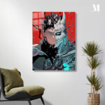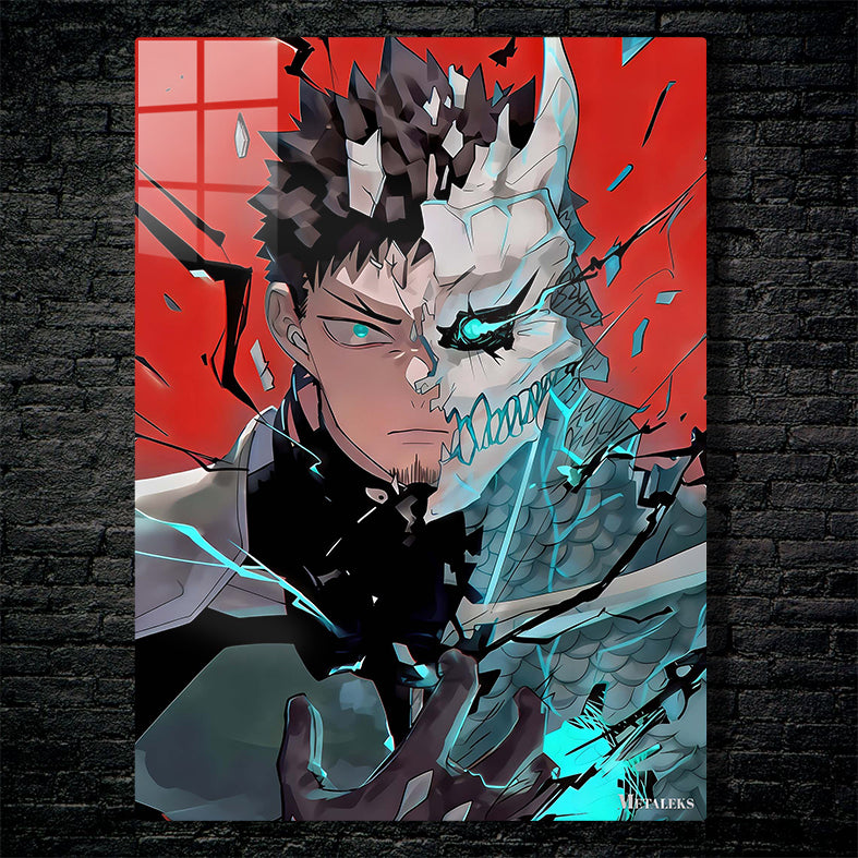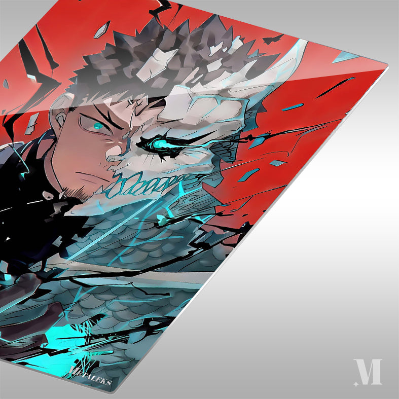 A character from “Jujutsu Kaisen” named Yuji Itadori, depicted with a split appearance featuring a dragon-like form. Metaleks Ultra HD Metal Poster – Create Your Passionate Space.