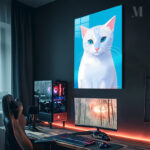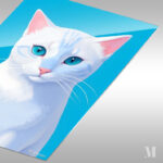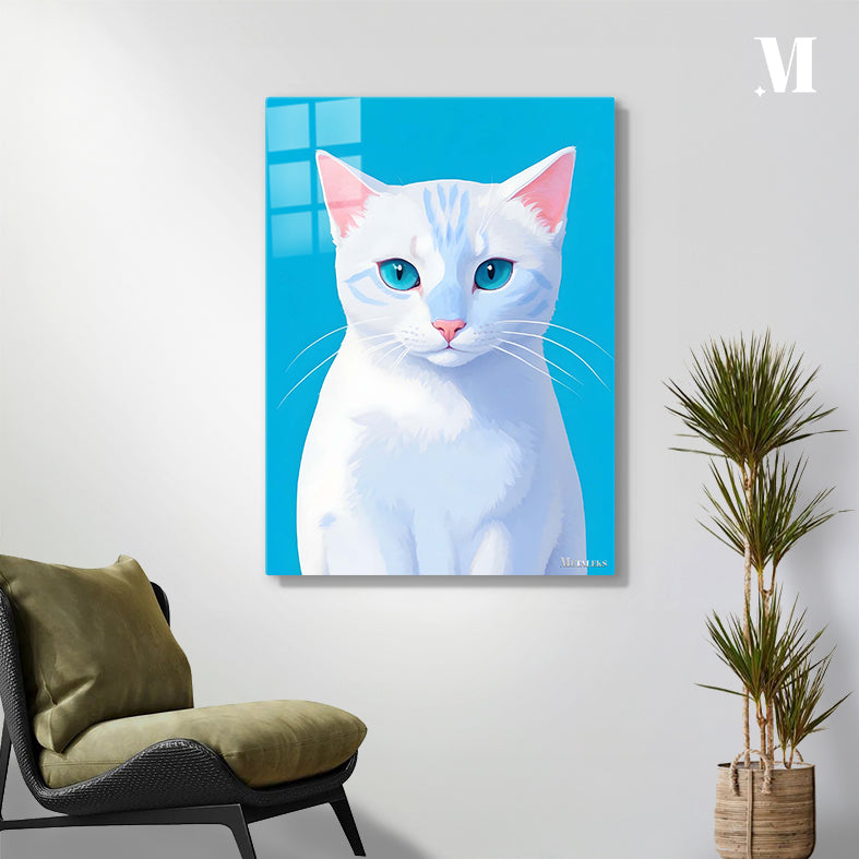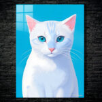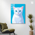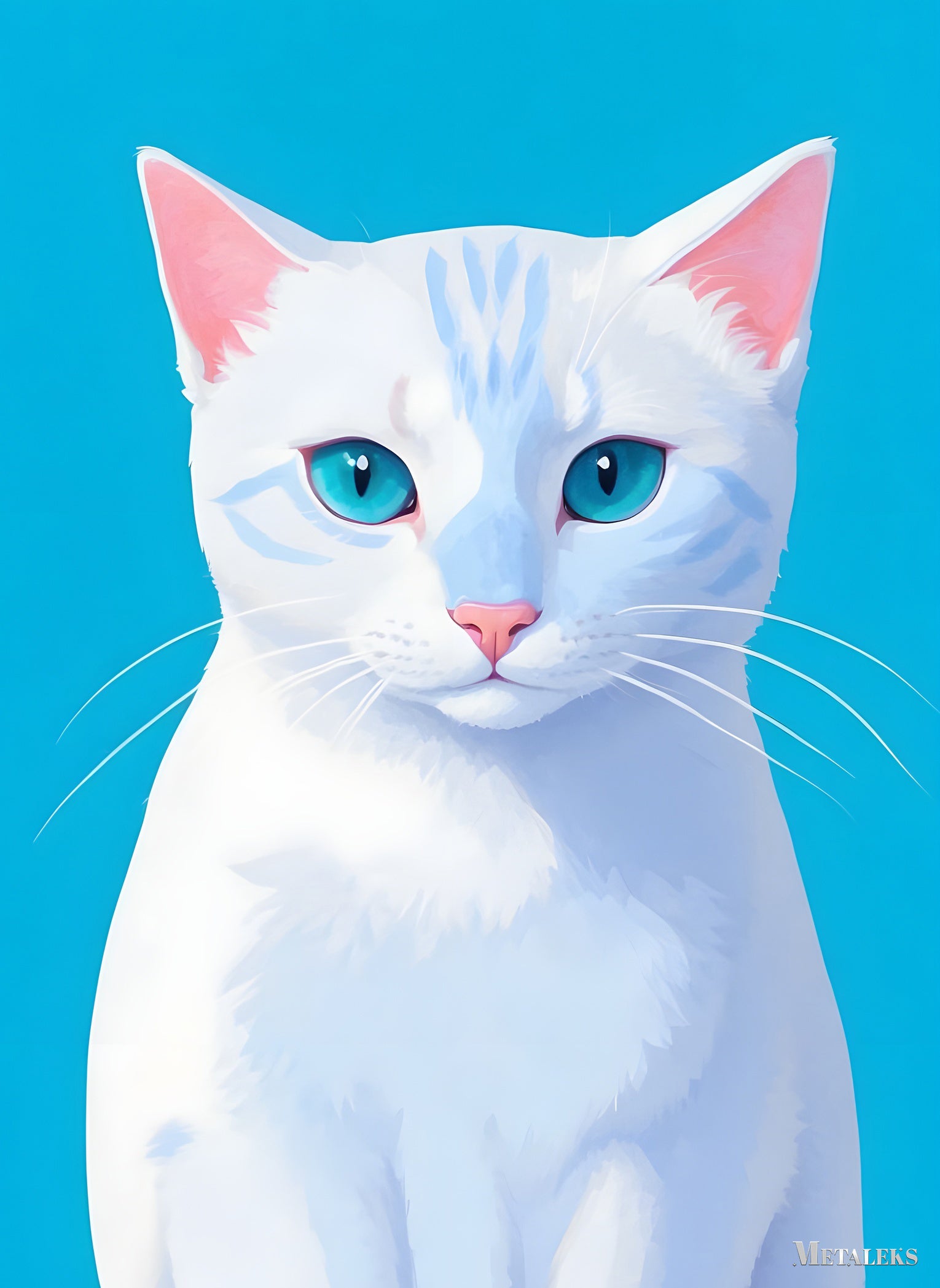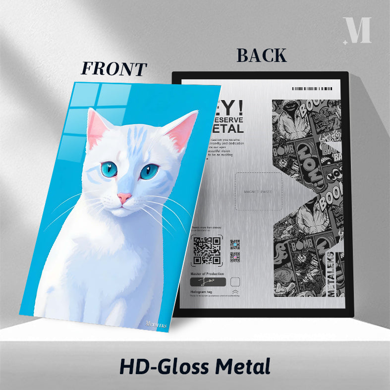 A white cat with blue eyes and pink ears. Metaleks Ultra HD Metal Poster – Create Your Passionate Space.