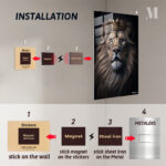 A lion with a crown on its head. Metaleks Ultra HD Metal Poster – Create Your Passionate Space.