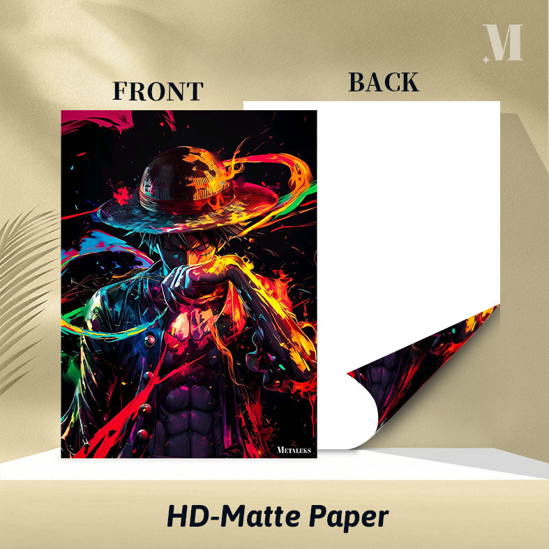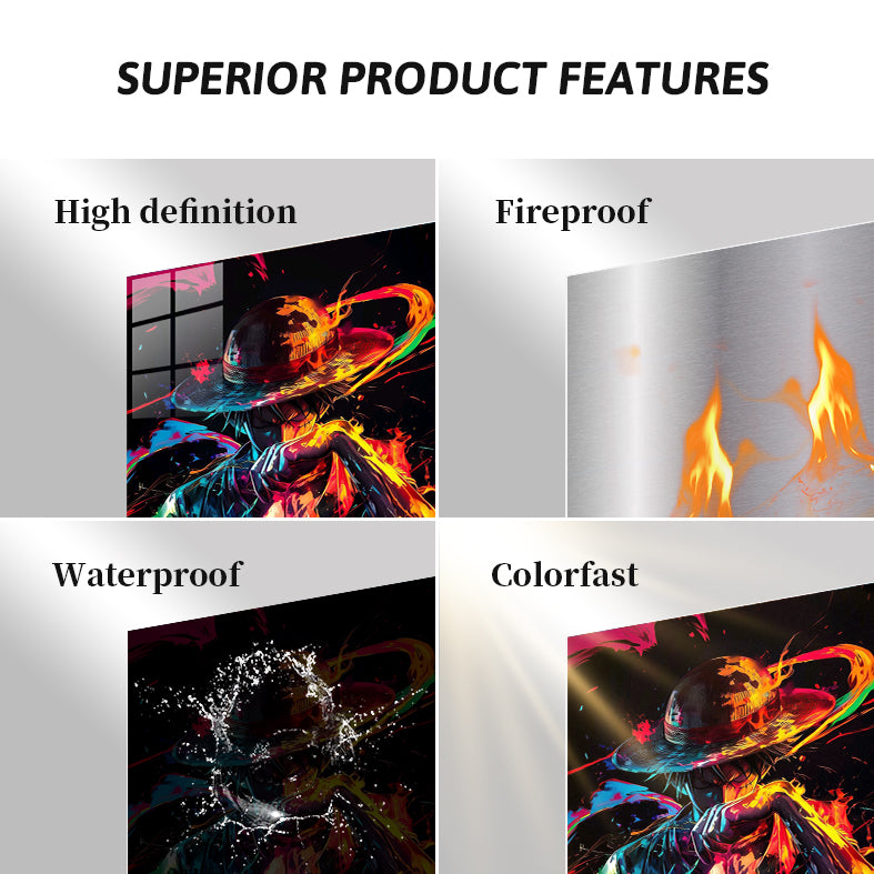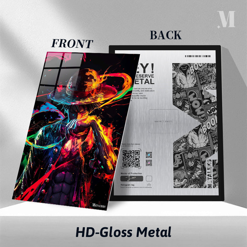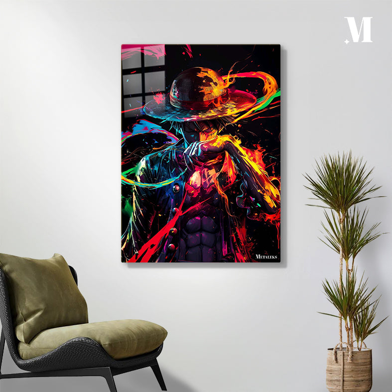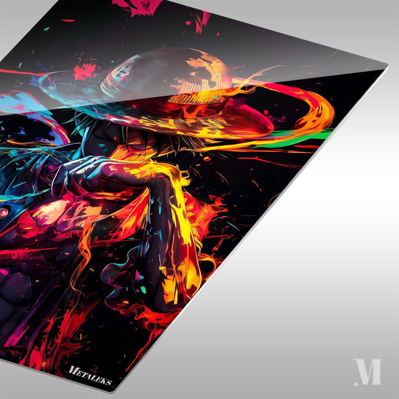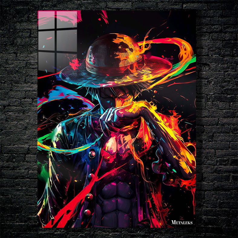 Luffy from “One Piece” is depicted with a colorful, dynamic appearance, wearing his signature straw hat. Metaleks Ultra HD Metal Poster – Create Your Passionate Space.