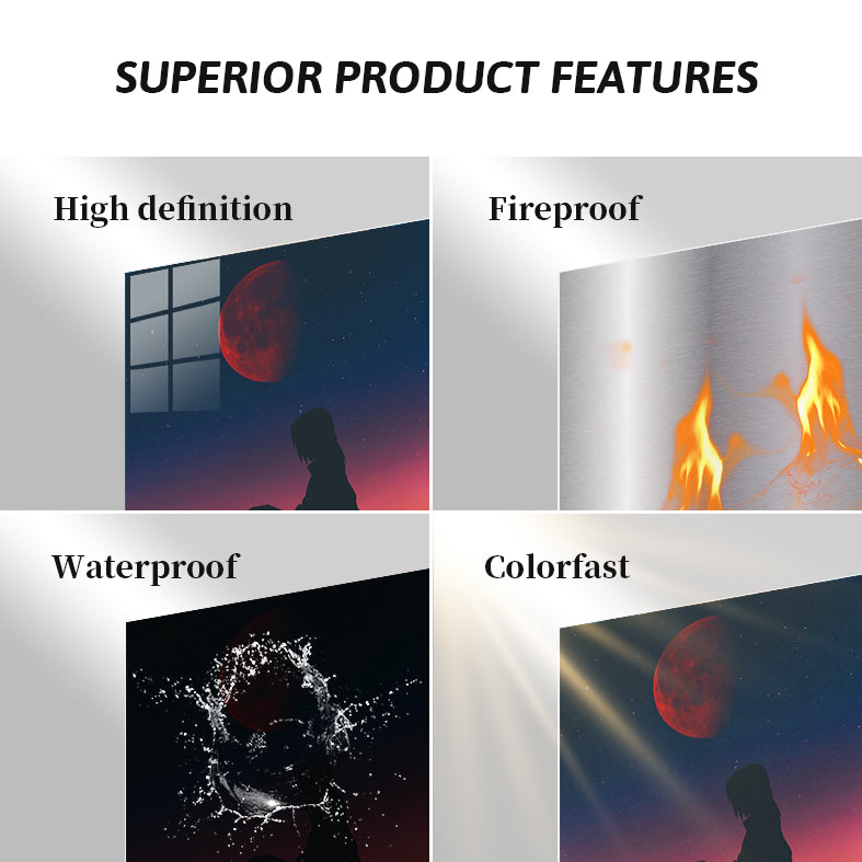 Metal printing is a unique technique that transfers images directly onto aluminum sheets, creating a distinctive gloss and depth. With Metaleks-S.HD image processing technology, metal posters feature more vibrant colors, enhanced three-dimensionality, and greater vividness. They are extremely durable, waterproof, scratch-resistant, and fade-proof, making them suitable for both indoor and outdoor environments. Metal posters are perfect for collection, display, or as gifts, capturing attention while elevating artistic value and showcasing a one-of-a-kind personality and taste.