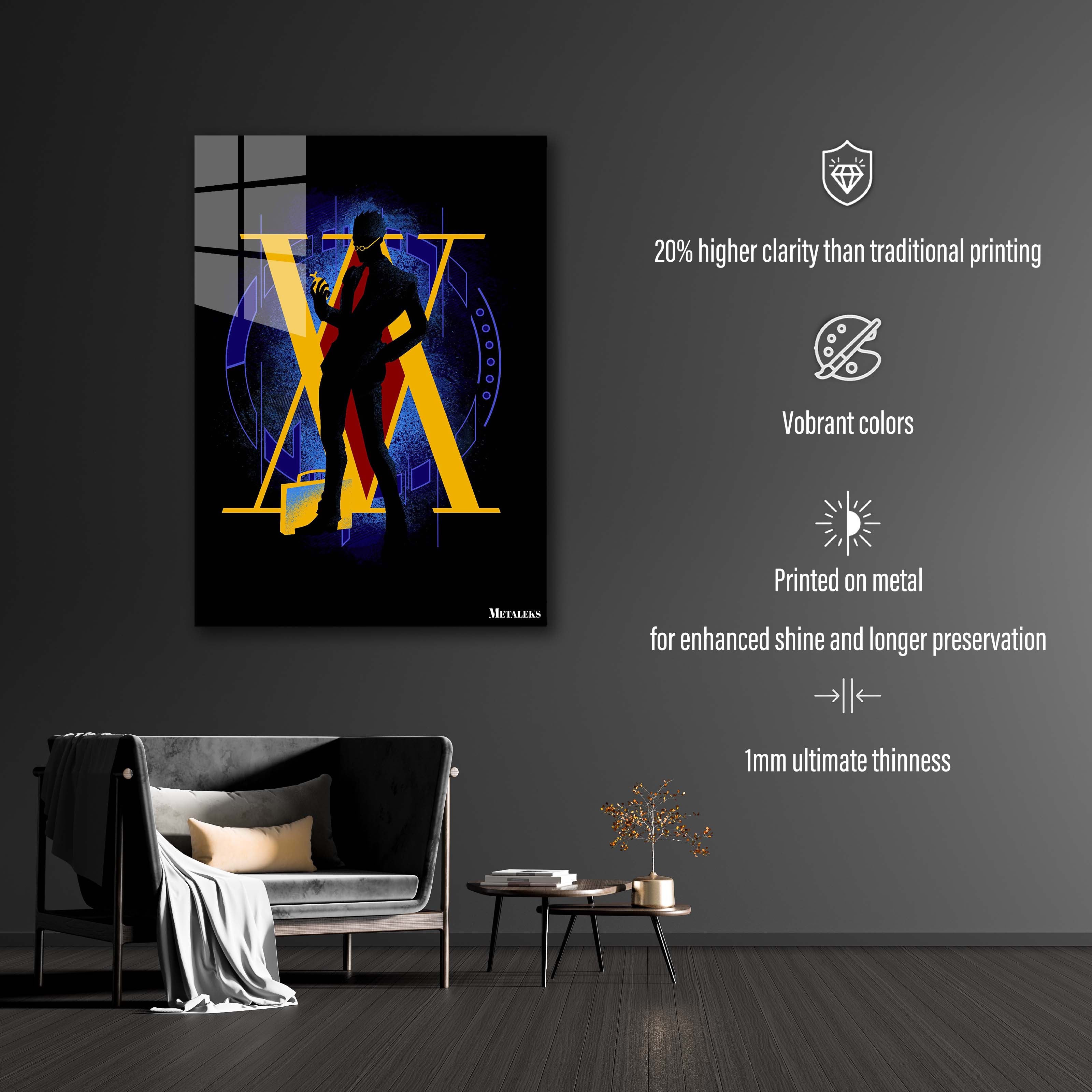 Metal printing is a unique technique that transfers images directly onto aluminum sheets, creating a distinctive gloss and depth. With Metaleks-S.HD image processing technology, metal posters feature more vibrant colors, enhanced three-dimensionality, and greater vividness. They are extremely durable, waterproof, scratch-resistant, and fade-proof, making them suitable for both indoor and outdoor environments. Metal posters are perfect for collection, display, or as gifts, capturing attention while elevating artistic value and showcasing a one-of-a-kind personality and taste.