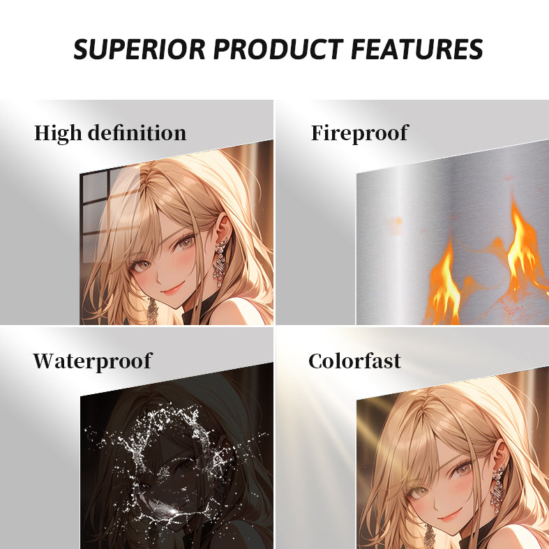 Metal printing is a unique technique that transfers images directly onto aluminum sheets, creating a distinctive gloss and depth. With Metaleks-S.HD image processing technology, metal posters feature more vibrant colors, enhanced three-dimensionality, and greater vividness. They are extremely durable, waterproof, scratch-resistant, and fade-proof, making them suitable for both indoor and outdoor environments. Metal posters are perfect for collection, display, or as gifts, capturing attention while elevating artistic value and showcasing a one-of-a-kind personality and taste.